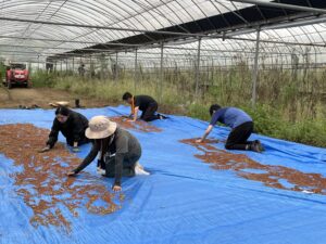 今回はソルガムとホワイトソルガムの収穫、脱穀、乾燥の工程を取材しました。詳しい内容は後日投稿される動画をご覧ください。(私も少し体験しました)。