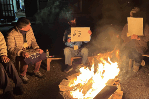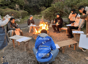 最後は残った10人ほどで焚き火を囲い、今年のエピソードや来年の抱負を語り合いました。